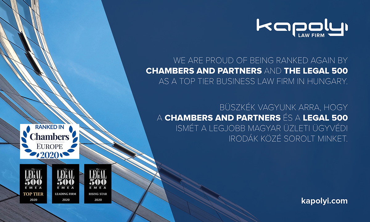 Kapolyi Law firm is among the best Hungarian law firms in 2020 according to Chambers and Partners and The Legal 500 legal guides